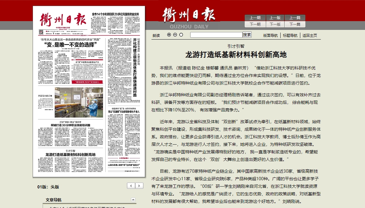 浙江华邦特种纸业有限公司副总经理杨刚告诉笔者,通过这次签约,可以有效补齐过去科研、装备开发等方面存在的短板。“我们预计节能减碳项目合作成功后, 综合能耗与现在相比下降10%至20%, 有效增强产品竞争力。”