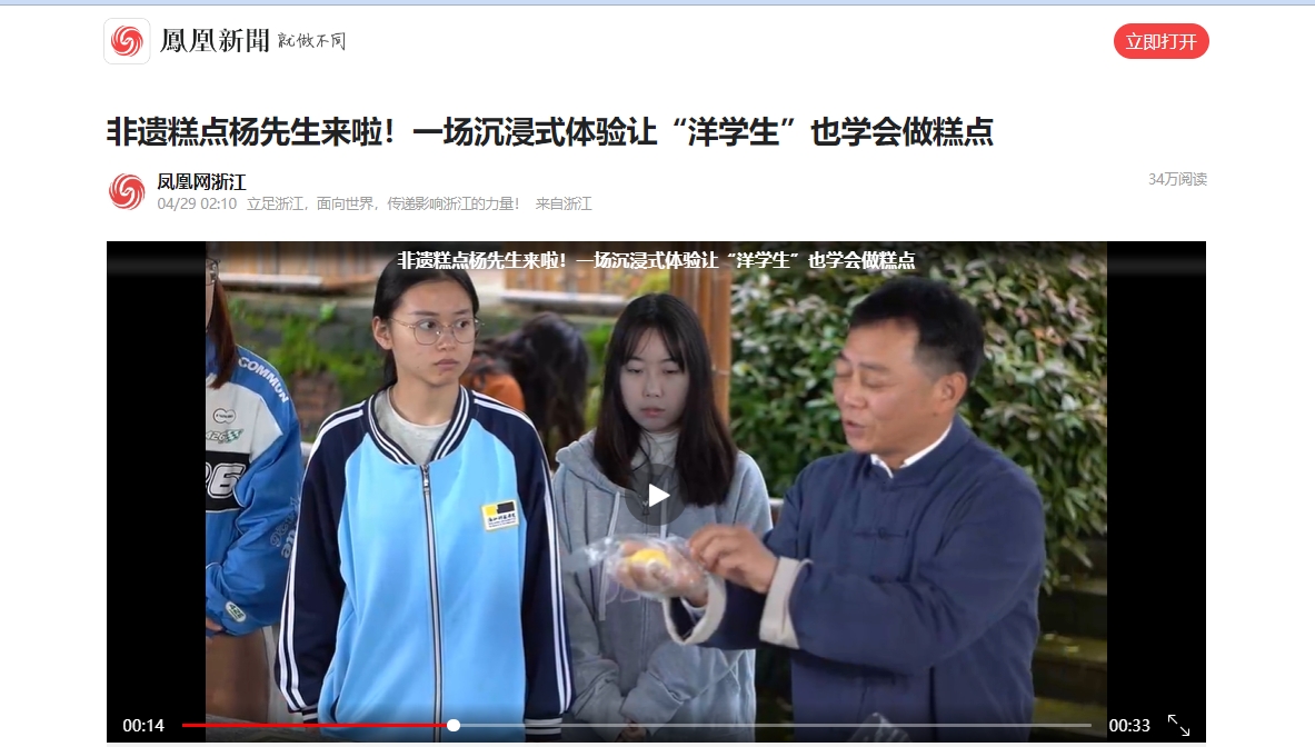凤凰网·浙江:非遗糕点杨先生来啦!一场沉浸式体验让“洋学生”也学会做糕点