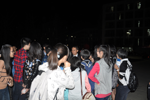 虽然开始时间定在晚上六点半,但不少同学六点不到就早早地等候在广场上,满心期待第一次与外教们面对面交谈的机会。本次外语角有来自美国、英国和德国的8名外教参加,叶高翔校长也饶有兴致地参加了安吉校区的第一次外语角,叶校长用流利的英文与学生亲切交谈。外教们给大一新生带来了全新的寓教于乐的教学模式。外教们各具特色,他们的周围很快围成一个大圈,同学们跟着不同的外教做着不同的游戏,有的甚至喝着德国外教带来的德国啤酒畅聊。尽管结束时间定于晚上八点,但同学们热情高涨,部分外教将活动持续到晚上十点半才结束,受到同学的热烈欢迎。