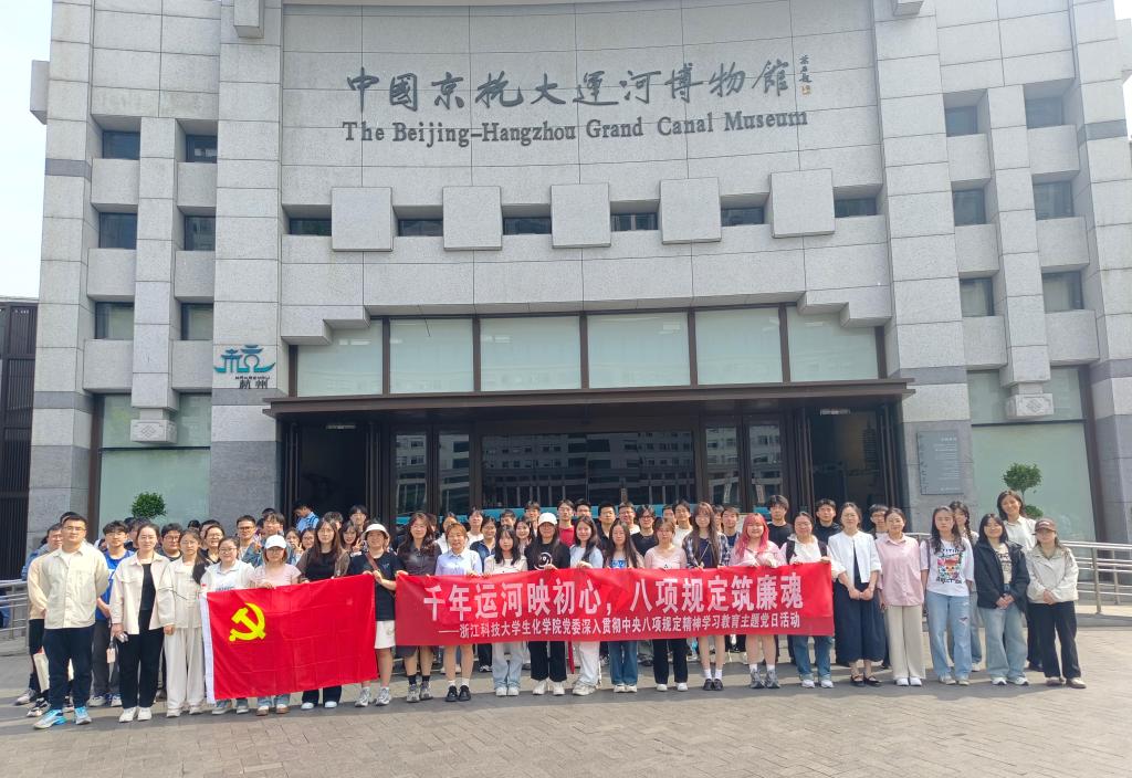 4 月 10 日,生化学院党委组织学院学生党支部前往京杭大运河博物馆,开展“千年运河映初心・八项规定筑廉魂” 主题党日活动。学院组织员以及部分学生党支部党员、入党积极分子共计 60 余人积极参与了此次活动。