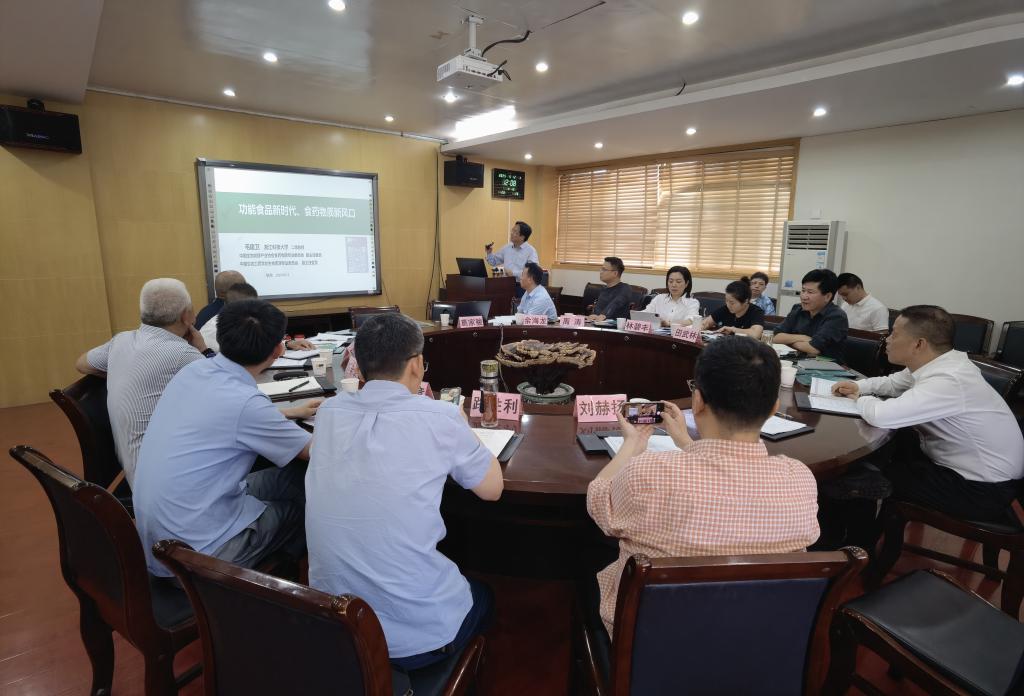 交流会后,我校浙江省农业生物资源生化制造协同创新中心主任毛建卫作了“功能食品新时代、食药物质新风口”主题报告。他表示我国“食药物质”是座庞大的资源宝库,正成为大健康产业中的新风口。他介绍了生化学院在食药物质生物发酵萃取方面的基础研究和产业应用成果。双方就食药物质新兴产业的发展,展开了热烈讨论。